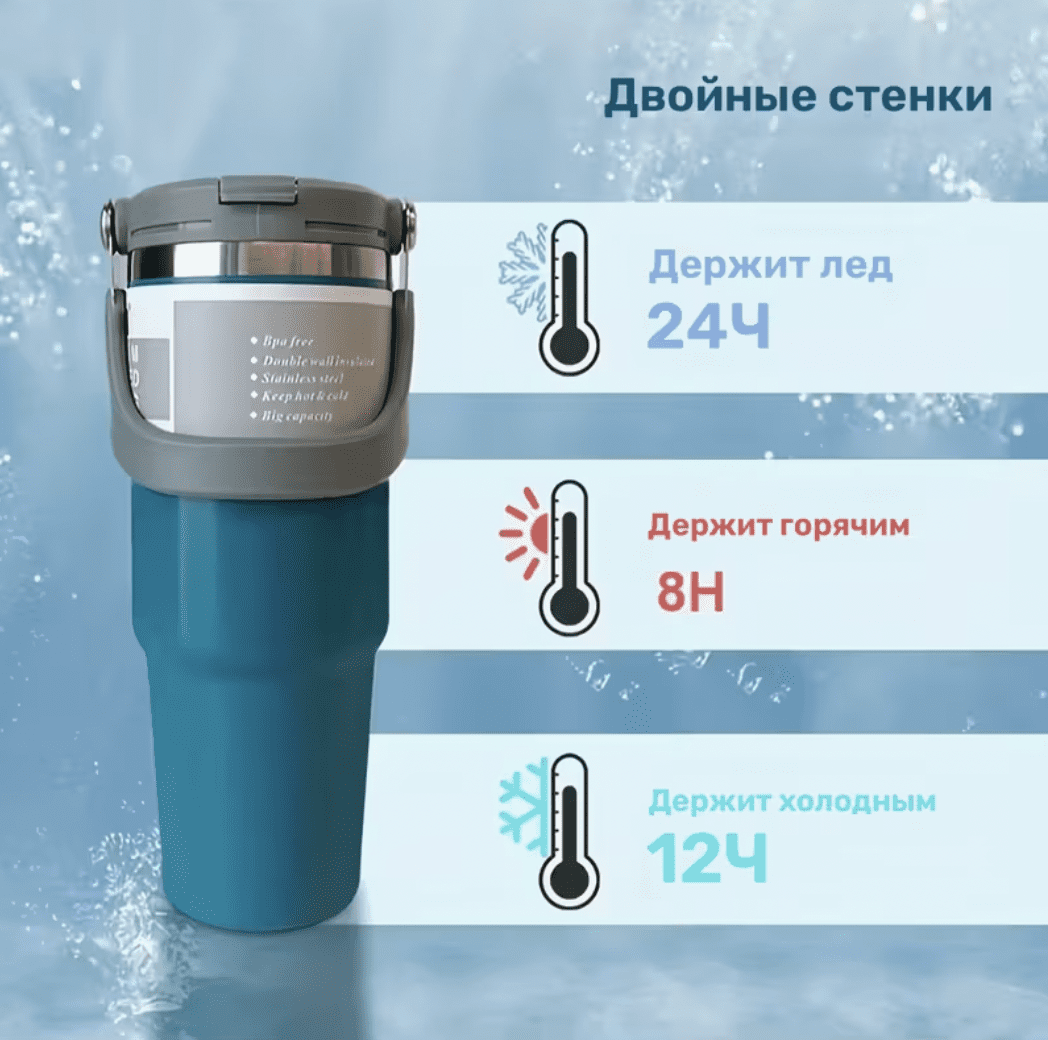 Perfect for keeping both hot and cold beverages at the desired temperature. Fill the mug with your favorite drink and close the lid securely. With its 890 ml capacity, it is ideal for long workdays, travel, training sessions, or outdoor activities. Wash before first use and clean regularly.